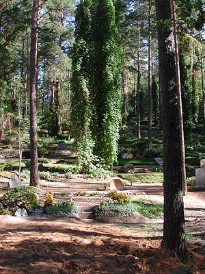 ...vor einem Waldfriedhof stand. Der Friedhof war inmitten der Bäume auf Terassen angelegt...
