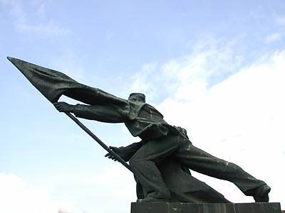 ...sozialistischer Fortschritt eben! In diesem Sinne gibt's an der Daugava auch ein oberdynamisches Denkmal im Stil des sozialistischen Realismus! Leider war nicht zu erkennen, wem es galt.